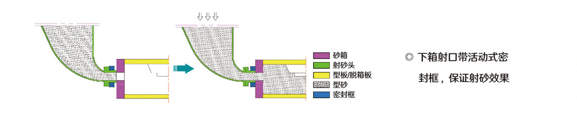 造型工序簡(jiǎn)單,無(wú)砂箱翻轉、回轉動(dòng)作,能耗低,造型動(dòng)作穩定、可靠